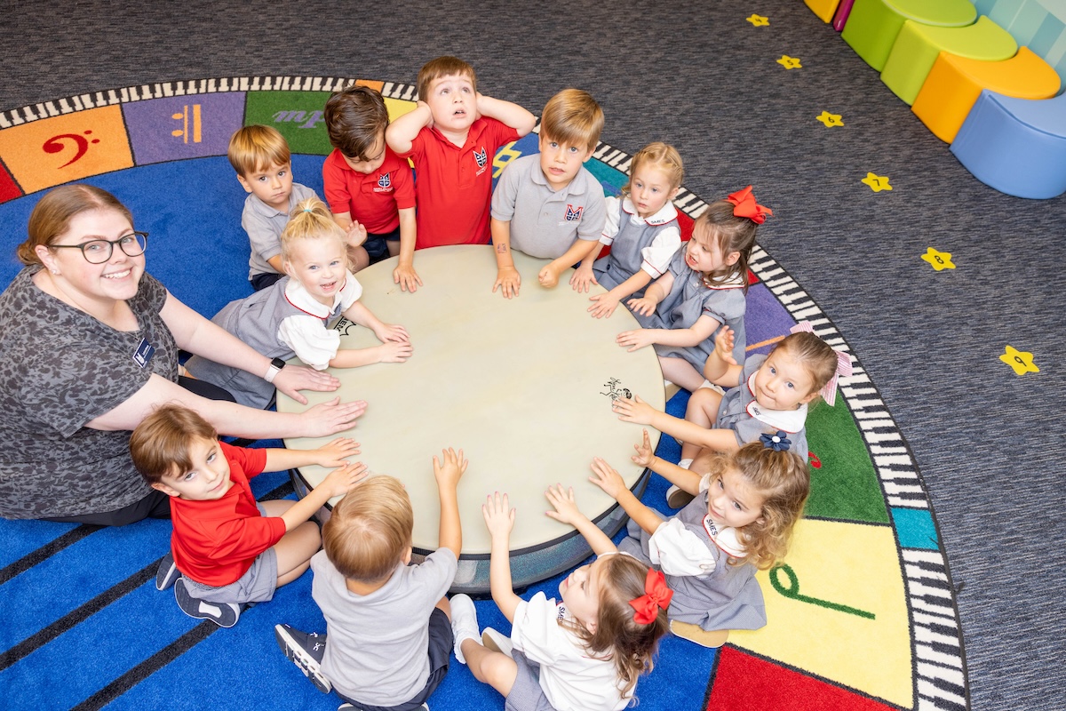 While children move and sing, we create new verses to known songs, develop a healthy singing technique, and we improvise artful instrumental accompaniments. Our preschool and kindergarten music classes allow exposure to different styles, meters and tonalities of music and the discovery of musical concepts through organic exploration. Our children feel the joy of singing to the Lord, prepare for and participate in school-wide performances and gain a love and innate understanding of music that will last for years to come.